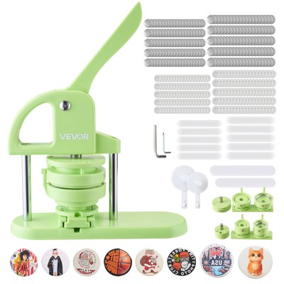 VEVOR Button Maker Machine, 2.95 in, Plastic Pin Maker with 100pcs Button Parts, Circle Cutter and Magic Book, Reinforced Ergonomic Handle, Green