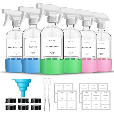 6 Pack 16 Oz Clear Glass Spray Bottles with Adjustable Nozzle and Silicone Sleeve