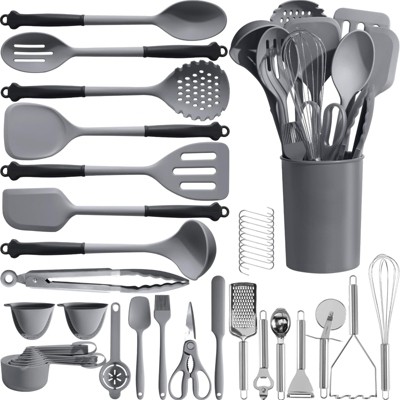 Itopfox Kitchen Utensil Set with 33 Silicone Cooking Tools for Nonstick Cookware - Stainless Steel Spatula Set & Useful Pots and Pans Accessories