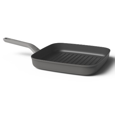 Rachael Ray 11" Hard-Anodized Nonstick Deep Square Grill Pan - Gray with Cranberry Red Handle: Griddle Pan, Rust-Resistant