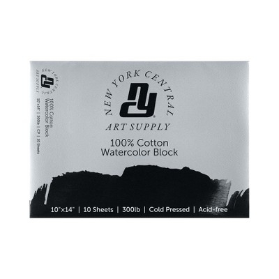 New York Central Watercolor Block, 300 lb Cold Press, Pack of 10, Archival Watercolor Paper for Artists, Students, Gelatin Sized, Durable Water Color