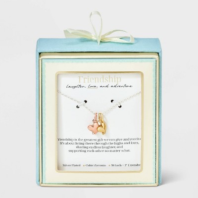 Silver Plated Cubic Zirconia Tri-Heart Necklace - Rose Gold/Silver/Gold