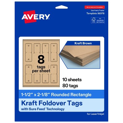 Avery Rounded Foldover Tags, 1-1/2" x 2-1/8", Kraft Brown, 80 Total