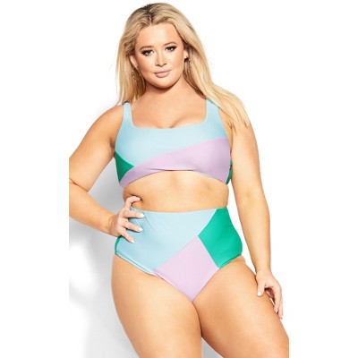 Swimsuits for All Romancer Colorblock Halter Triangle Bikini Top (Plus Sizes Available)