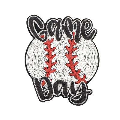 Baseball Mama Sequin Iron On Patches Game Day Applique Large Patch Accessory Clothes Jacket Uniform Backpack DIY Decor
