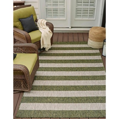 Unique Loom Outdoor Striped Distressed Stripe Striped Woven Area Rug