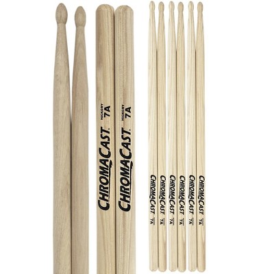 ChromaCast 7A USA Made Hickory Drumsticks Pair - Wood Tipped - Drum Sticks Tour Tested by Pro Drummers - Real American Hickory Wood