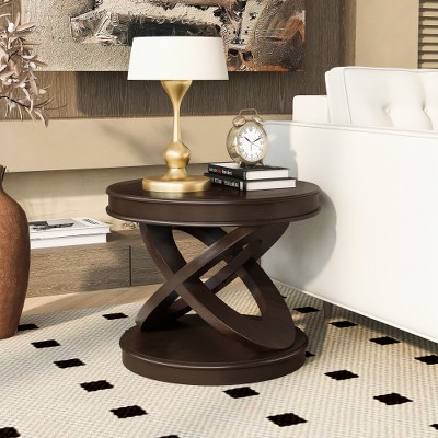 IRIS USA Wood and Metal Side Accent Table, Brown
