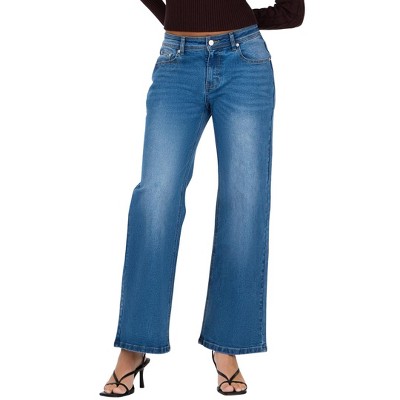 Forever 21 Women’s Low Waist Wide Leg Denim Jeans with Heart Patch Details