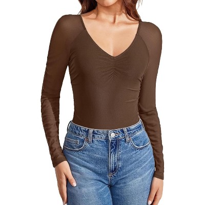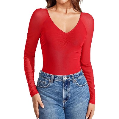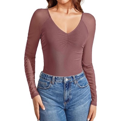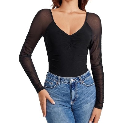 Avidlove Women's Bell Long Sleeve Bodysuits Thong Crew Neck Mesh Body Suit Going Out Leotard Tops