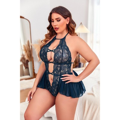 Avidlove Lingerie for Women Lace Babydoll Chemise Negligees Exotic Nightgowns Halter Nighties Sheer Mesh Nightwear