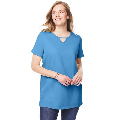 Woman Within Perfect Short-Sleeve Keyhole Tee