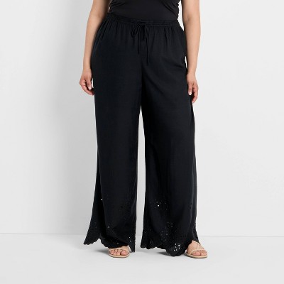 Women's High-Rise Wide Leg Embellished Eyelet Pull-On Pants - Future Collective