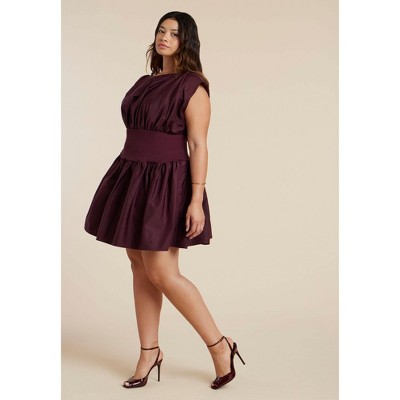 ELOQUII Shirred Strong Shoulder Tie Detail Dress