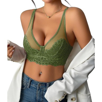 Avidlove Women's Bra Lace Underwire Full Coverage Mesh Unlined T-Shirt Bralette Lingerie Army Green XXL