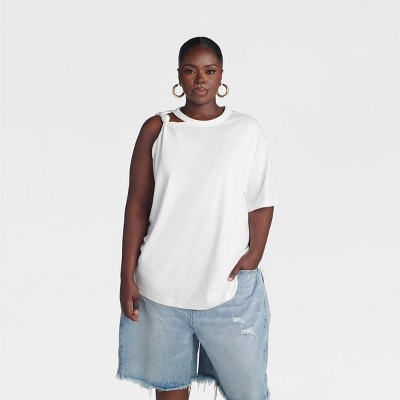 KBB by KAHLANA Women's 'The Asymmetric Shoulder Twist T-Shirt' - White