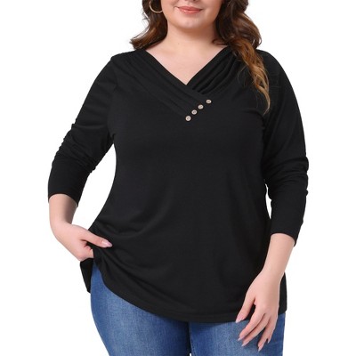Women's Plus Size V Neck Long Sleeve Button Decor Solid Casual Tunic Tops - Agnes Orinda