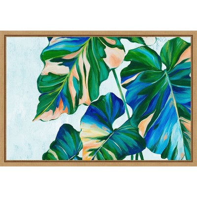Amanti Art Blue Tropical Leaves I by Alex Black Framed Canvas Wall Art