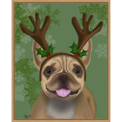 Amanti Art 23"x28" French Bulldog Antlers 1 by Fab Funky Framed Canvas Wall Art Print