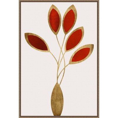 23"x33" Five Red Flowers by Kubistika Framed Canvas Wall Art Print Bronze - Amanti Art: Modern Abstract Botanical Decor