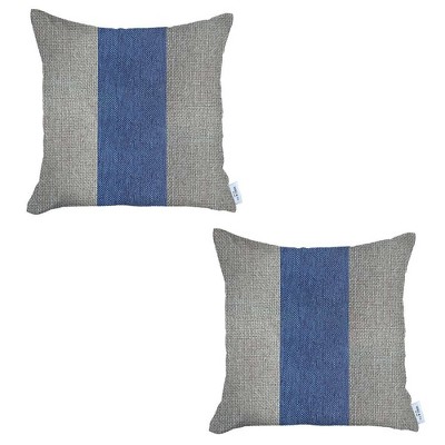 HomeRoots Set of Two 18" Blue And White Color Block Throw Pillow Covers