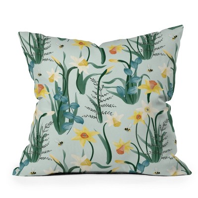 16"x16" Gyaneshwari Dave Pinecone Dream Daffodil Rumors Square Throw Pillow Green - Deny Designs