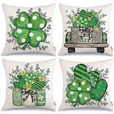 St Patricks Day Shamrock Mason Jar Truck Lucky Throw Pillow Covers 18x18 Inch Set of 4, Green Striped