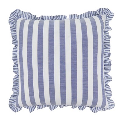 Saro Lifestyle Striped Ruffle Edge Cotton-Blend Throw Pillow Cover – Classic Cabana Stripe Design for Sofa, Bed & Accent Styling