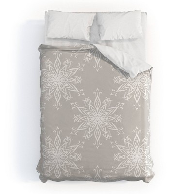 Queen Lisa Argyropoulos La Boho Snow Polyester Duvet Cover + Pillow Shams Beige - Deny Designs: 300 Thread Count, Abstract Pattern, Machine Washable