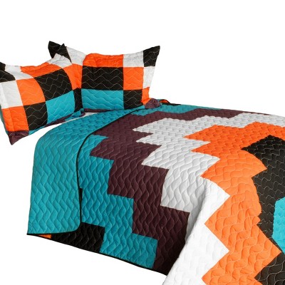 Slickblue Full/Queen Quilt Set, 100% TC Fabric Vermicelli Quilted Patchwork, Reversible, Multi Design & Color, 3pc