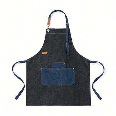 Alilang Denim Kitchen Apron with Adjustable Neck Strap Multi Pocket Work Apron for Cooking Baking Barista