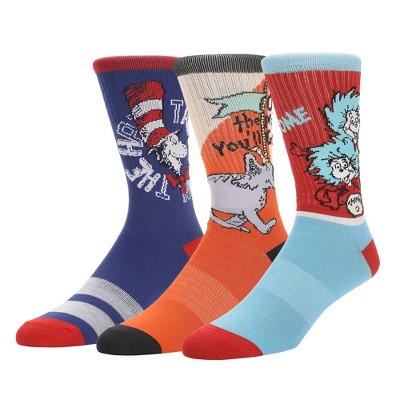 Dr Seuss Lorax Oh The Places and Cat Mens Athletic Crew Socks 3 Pack