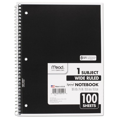 Spiral Notebook, 3-Hole Punched, 1-Subject, Wide/Legal Rule, Randomly Assorted Cover Color, (100) 10.5 x 7.5 Sheets
