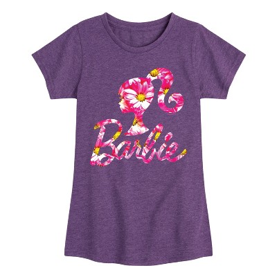 Girls' - Barbie - Pink Daisy Pattern Logo Fitted Short Sleeve Graphic T-Shirt