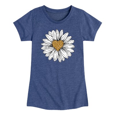 Girls' - Instant Message - Leopard Print Heart Daisy Fitted Short Sleeve Graphic T-Shirt
