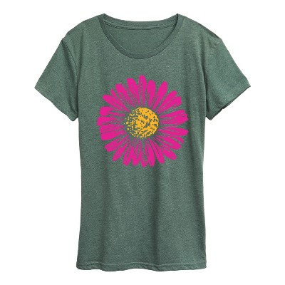Women's - Instant Message - Pink Yellow Daisy Short Sleeve Graphic T-Shirt