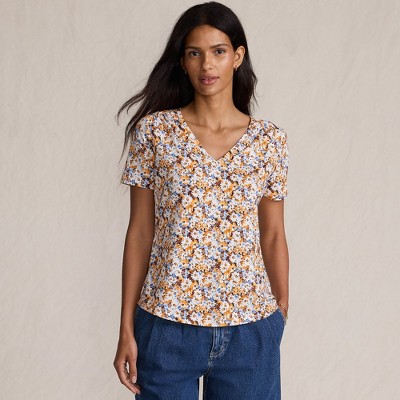 Lands' End Women's Short Sleeve Lightweight Jersey Gathered Shoulder T-Shirt