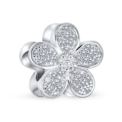 Bling Jewelry Sparkling Clear CZ Pave OF Flower Shape Daisy Charm Bead .925 Sterling Silver European Bracelet