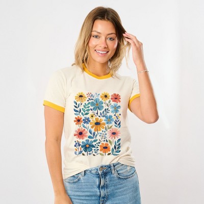 Simply Sage Market Watercolor Daisy Garden Ringer Tee