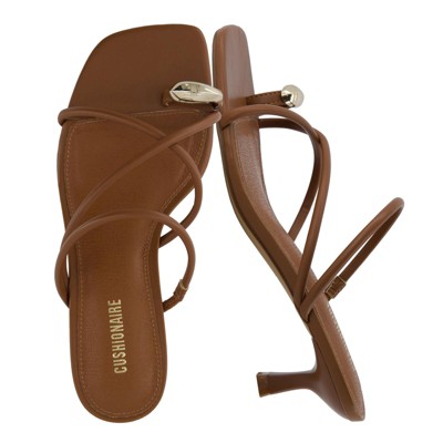 CUSHIONAIRE Maui Strappy Womens Sandals with Kitten Heels – Vegan Leather Slip On Dress Sandals for Women, Square Toe Wedding Shoes