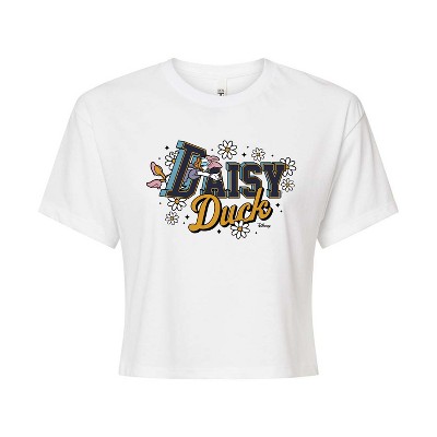 Women's Disney Daisy Duck Collegiate Cropped Graphic T-Shirt - White - Medium
