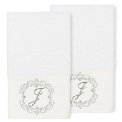 Avanti White with Grey Block Monogram Hand Towel J