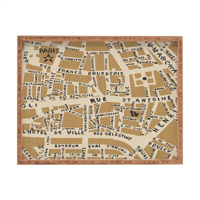 Holli Zollinger PARIS MAP RUSTIC Rectangular Bamboo Tray - Deny Designs