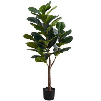 Gulches 47in Artificial Fiddle Tree in Pot 51 Real Touch Green Leaves 47in Tall Indoor Floor Faux Plant