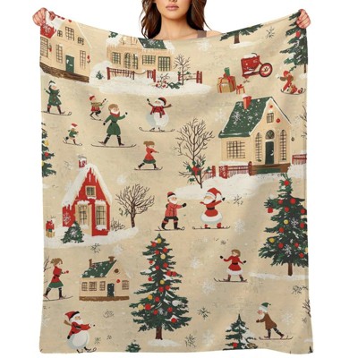 FIONECA Christmas Vintage House Wreath Tree Holly Pattern Soft Cozy Throw Blanket Festive Holiday Decor 40x50 inches