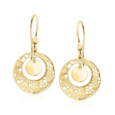 Ross-Simons Sterling Silver and 14kt Gold Sand Dollar Drop Earrings With .10 ct. t.w. Diamonds