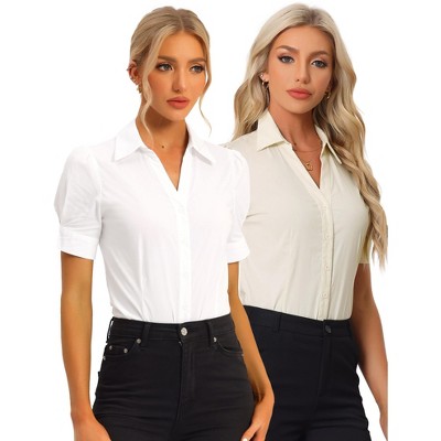 INSPIRE CHIC Women's Stand Collar Short Sleeve Office Work Shirt Button Down Bodysuits