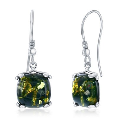 Simona Sterling Silver, Green Amber Square Dangle Earrings