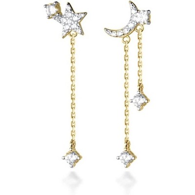 Reffeer Solid 925 Sterling Silver Asymmetric Moon Star Dangle Earring for Women Teen Girls CZ Drop Earrings Tassel Chain