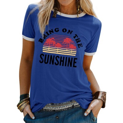 Clearlove Women's Playful Letter Print T-Shirt Short Sleeve Graphic Casual Crew Neck Tee Summer Top